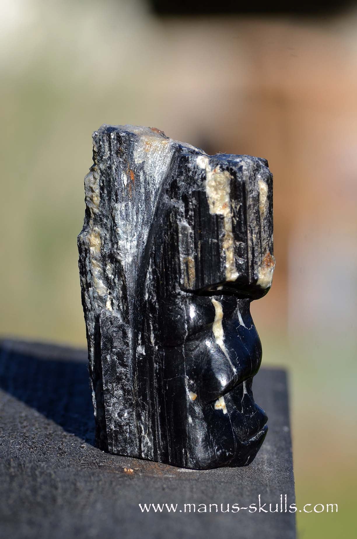Hairless Black Tourmaline Tribal Skull