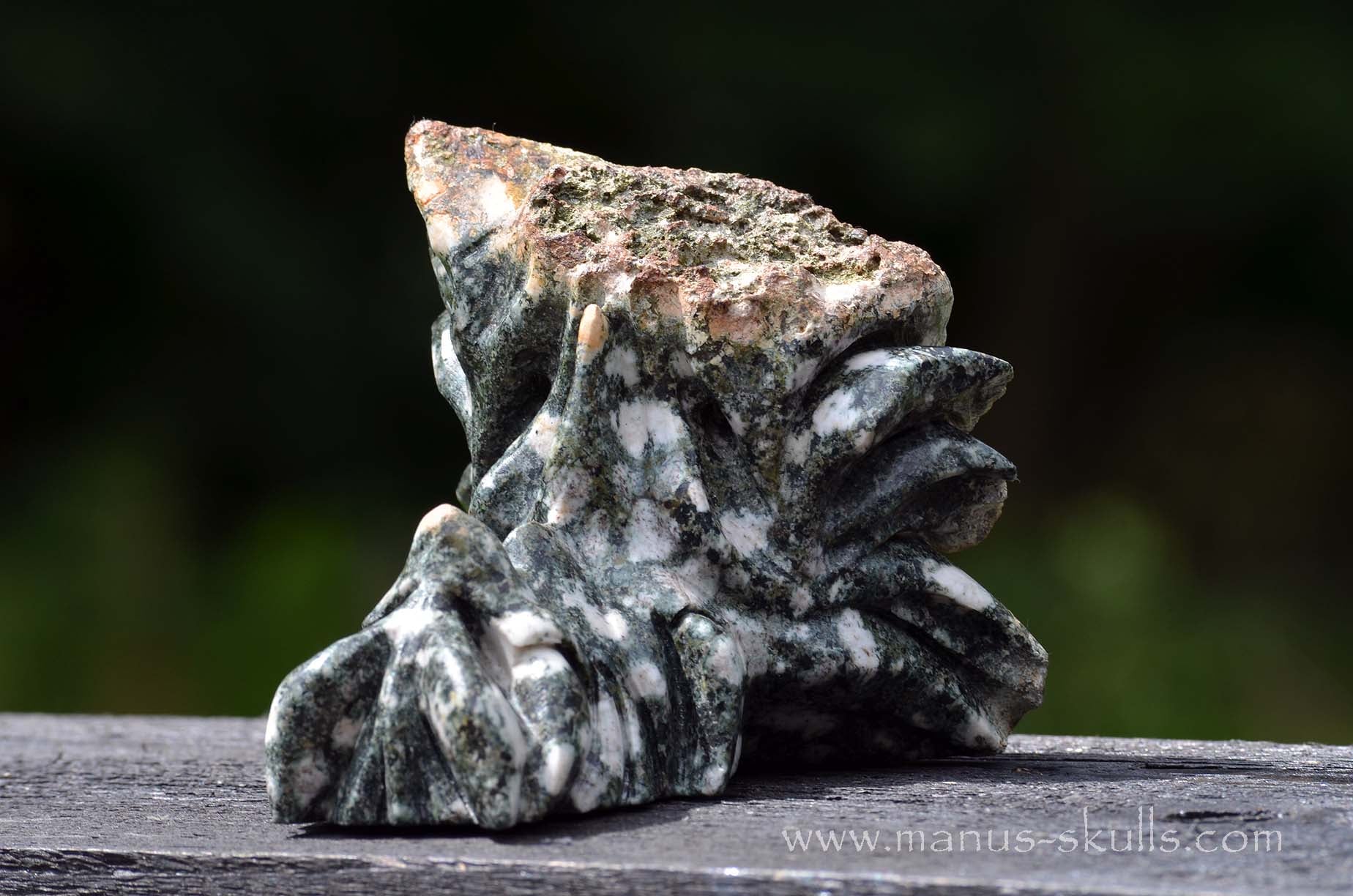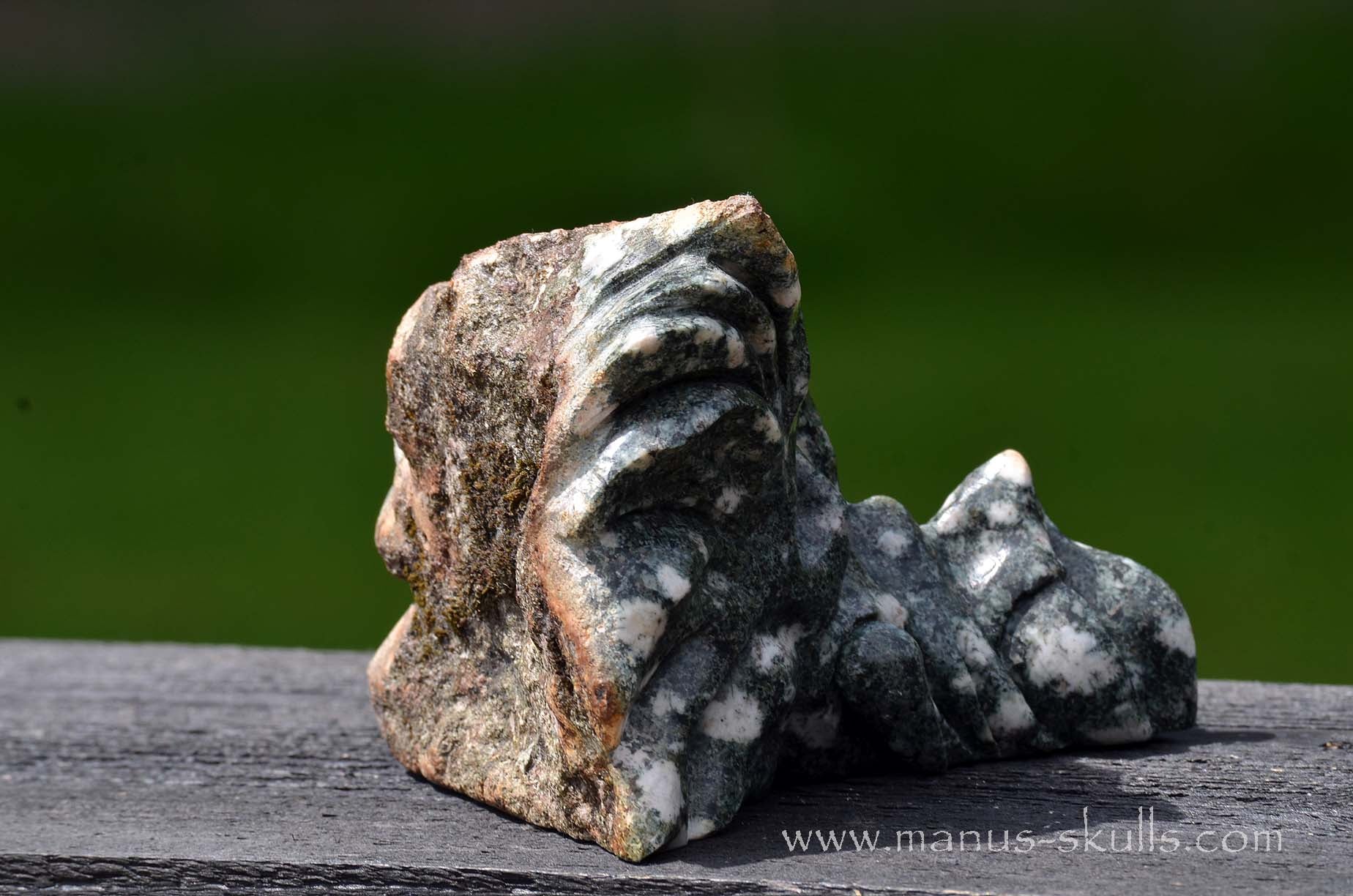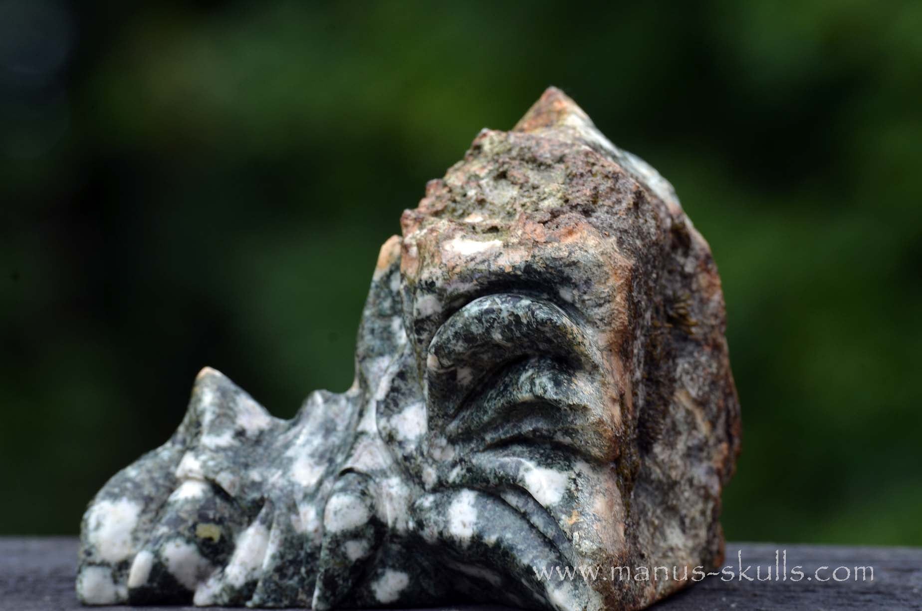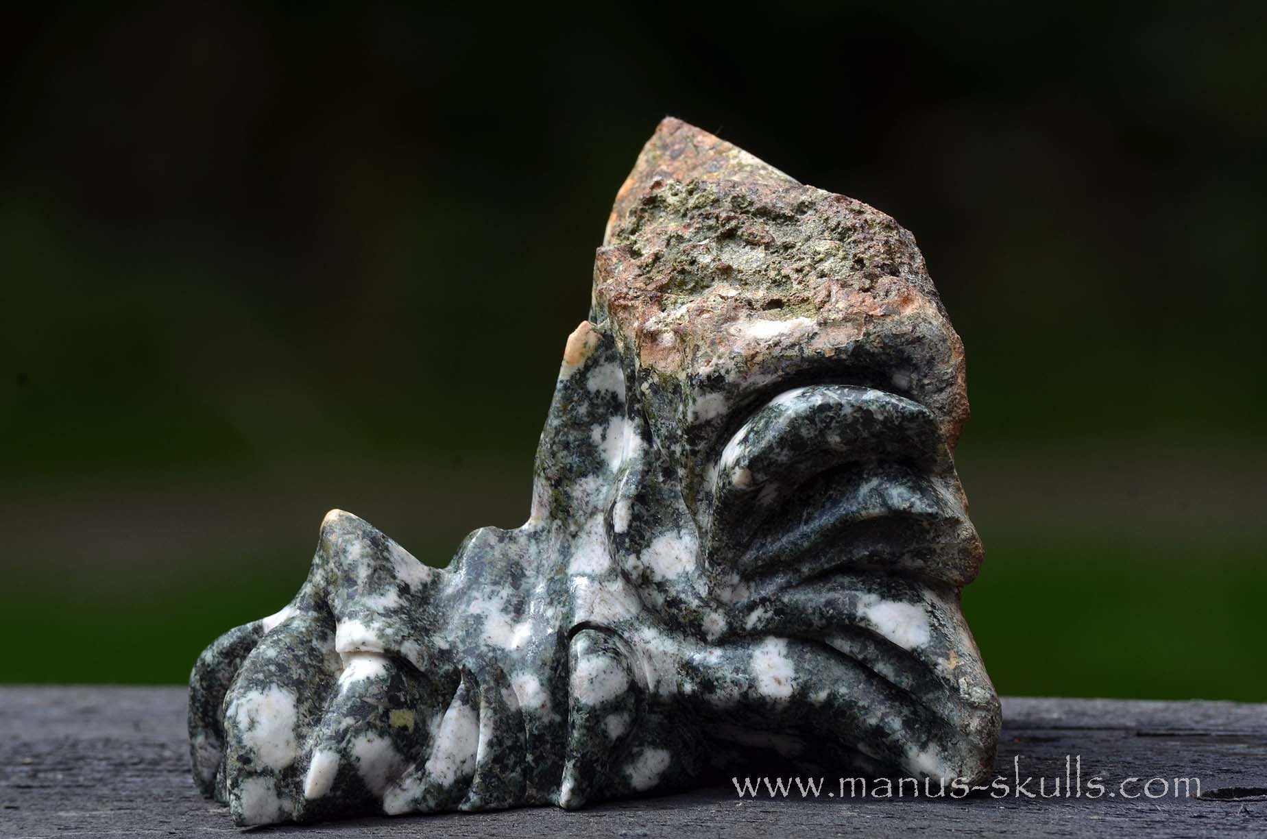 This is a one of a kind and detailed Dragon Skull carved out of Preseli Bluestone ..... the so called Stonehenge stone ..... only found at the Preseli Hills in Pembrokeshire Wales, united Kingdom.