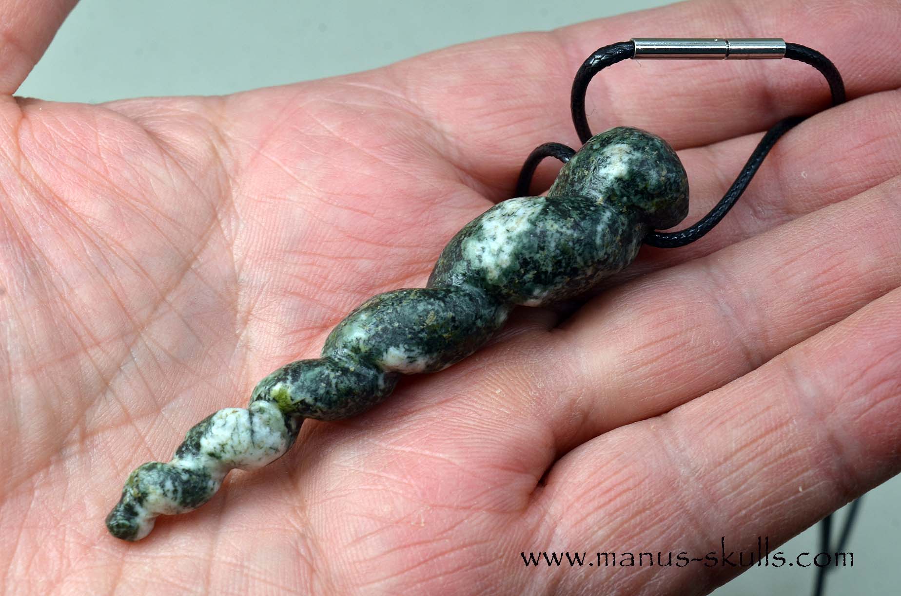 This is a very special PRESELI BLUESTONE Unicorn Horn Alicorn Pendant ...... completely handmade. Can also be used as a wand or pendulum!