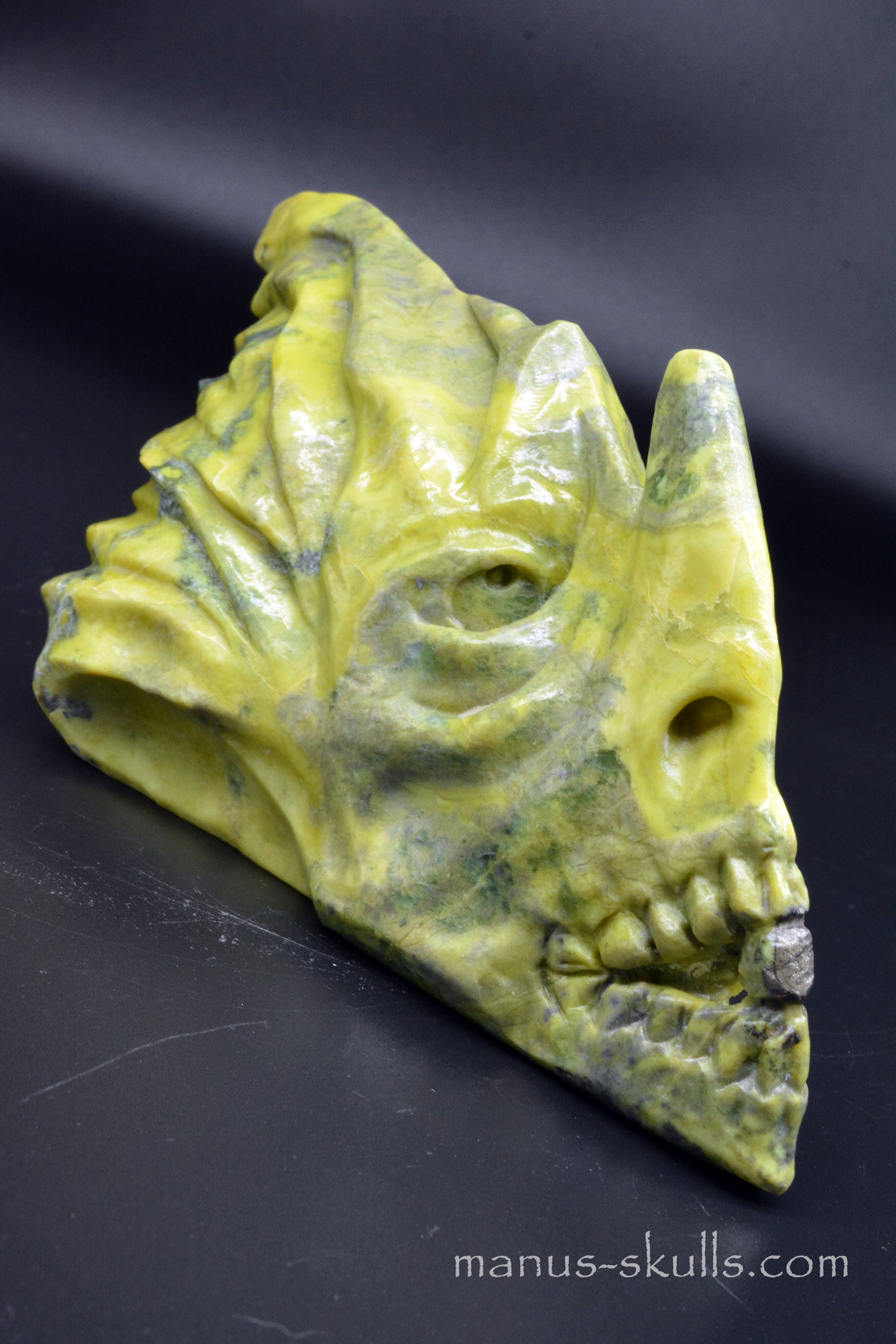Noble Serpentine Jade  Healerite  Jade, Fairy Tail Manus Dragon ...... hold a piece of inclosed pyrite within its front teeth. Makes it a great compagnion and healer .....
