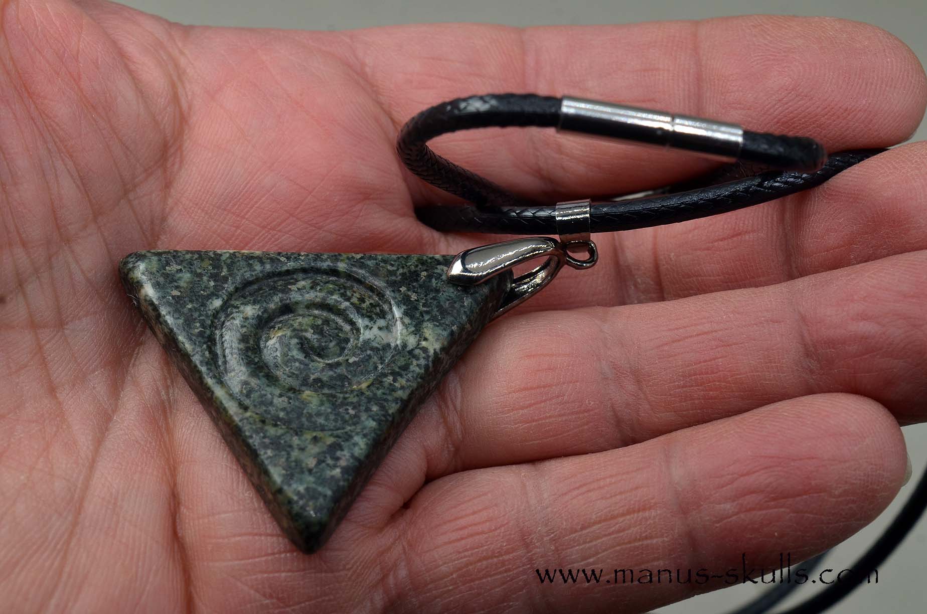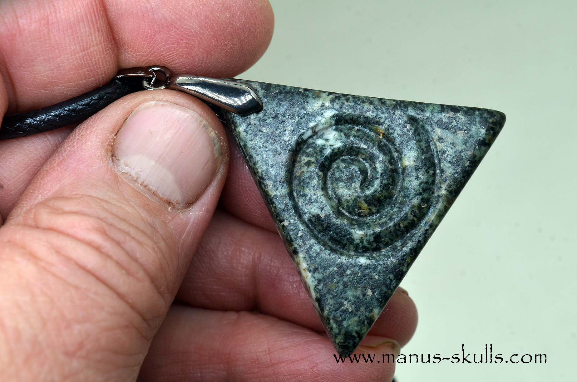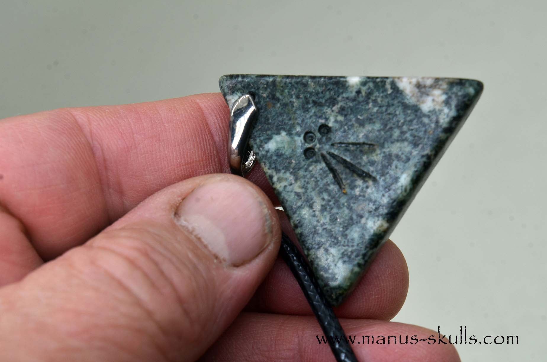 Triangle Preseli Bluestone Spiral Awen Pendant.